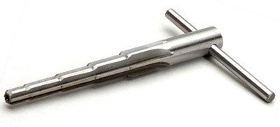Крупные развертки на 50 мм могут изменить свой диаметр на 3 мм. Для проведения регулировки внутри их конструкции устанавливается стальной шарик, регулируемый винтом. Отверстие, по которому он передвигается, имеет коническую форму. Чем глубже его вкрутить, тем больше он деформирует внутренние стенки, расширив наружный диаметр развертки.