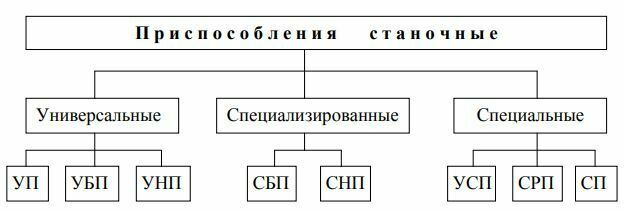 Универсальные приспособления (УП) – применяют для установки и закрепления заготовок разных по форме и габаритным размерам, обрабатываемых на различных металлообрабатывающих станках, в единичном и мелкосерийном производствах. К ним относятся различные патроны, машинные тиски, делительные головки и т.д