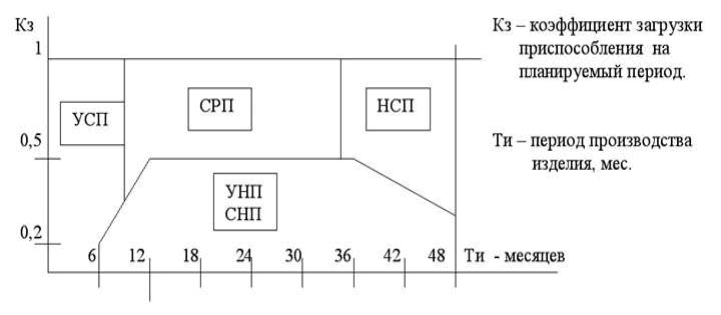 Применение УСП в 2-3 раза сокращает сроки технологической подготовки производства к выпуску нового изделия. Затраты на восстановление комплекта деталей УСП за год составляют 3,5% от всей себестоимости комплекта. Основой комплекта являются гидравлические блоки. Конструктивно они выполнены в виде прямоугольных плит УСП, в корпус которых встроены гидроцилиндры двустороннего действия. Срок использования деталей и узлов УСП примерно 25 лет. УСП применяют в опытном, единичном, мелкосерийном и частично в среднесерийном типах производства.