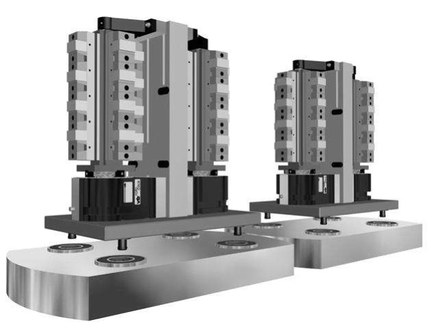 Отверстия предназначены для фиксации на плите специальных сменных наладок, установочно-крепежных и других элементов или обрабатываемых заготовок. Кроме того, они могут быть использованы в качестве «нулевой точки» при установке приспособления на станке с ЧПУ. Также для крепления сменных наладок и др. на верхней поверхности плиты предусмотрены Т-образные пазы. Из деталей и сборочных единиц СРП разработаны два специализированных комплекта – первый комплект предназначен для оснащения сверлильных и фрезерных станков с программным управлением, второй – для многооперационных и расточных станков с ЧПУ.